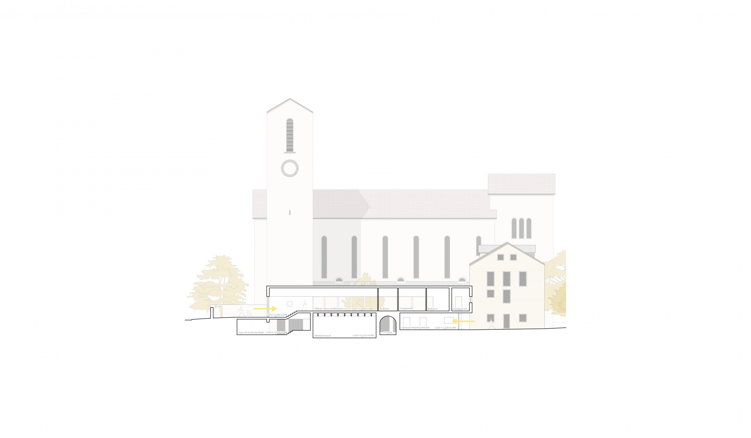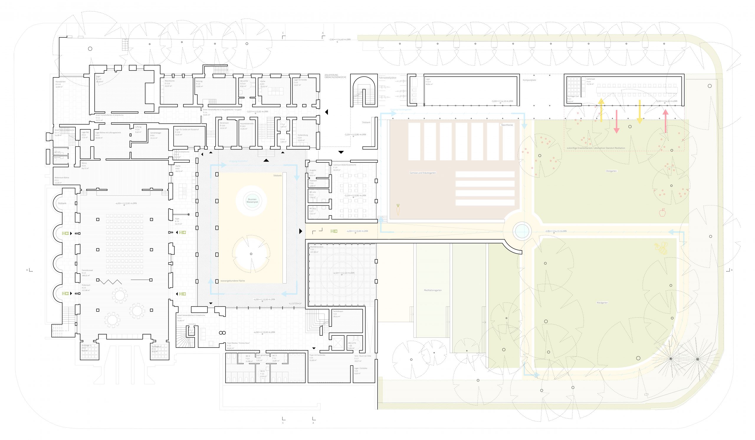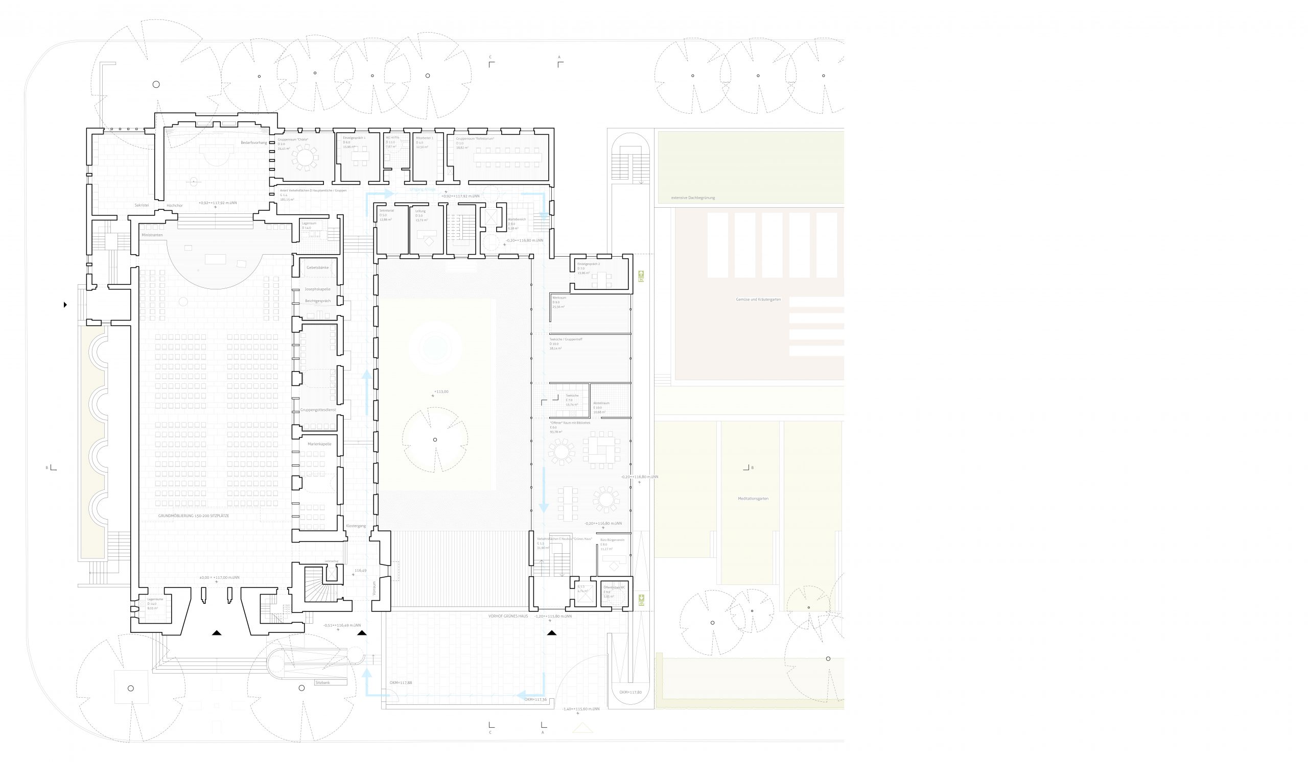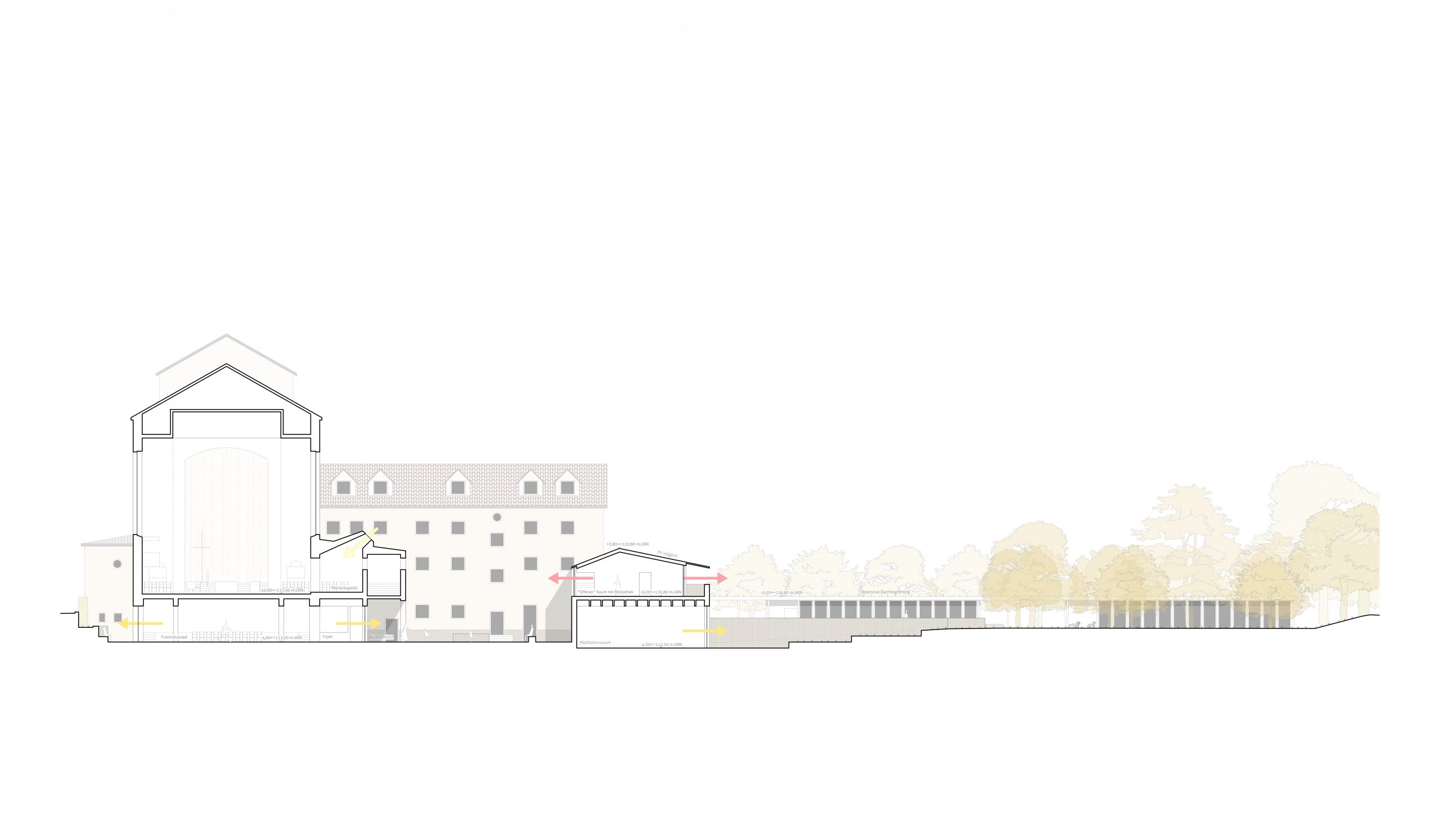 Nach anfänglicher Nutzung als Kapuzinerkloster fand neben der Pfarrei St. Franziskus eine Sensibilisierung als spirituelle Anlaufstelle für Interessierte und eine Stärkung der sozialen Infrastruktur Dammerstocks statt. Neben der multifunktionalen Ausrichtung hat gerade der Bezug der baulichen Anlagen zum Klostergarten eine Anziehungskraft auch übers Quartier hinaus. Um St. Franziskus als Stadtkloster zukunftsfähig zu gestalten und frischen Ideen Raum zu geben, wird im Wettbewerbsverfahren nach einer Lösung zur Unterbringung eines erweiterten Raumprogramms inklusive Meditationsraums gesucht.